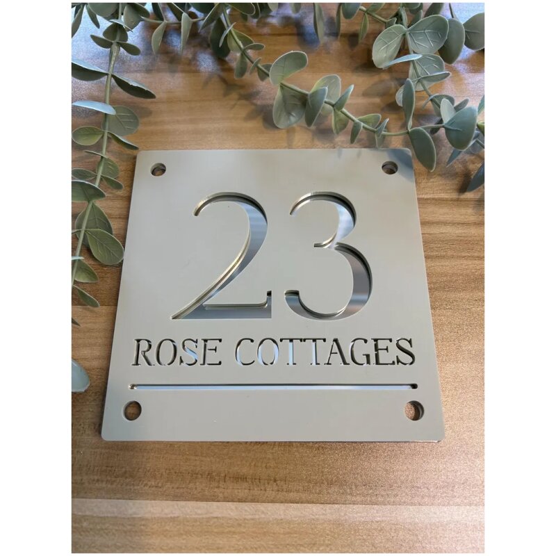 Inspired by the simple beauty of nature, we offer a natural colour choice of PERSPEX® Acrylic in a Matt finish, simulating the earthy tones and velvety texture of natural stone to compliment the material around them, such as stone, brick, wood or metal for example. With a contracting coloured or mirror background your new sign will give a stunning luxury feel to the front of your home.