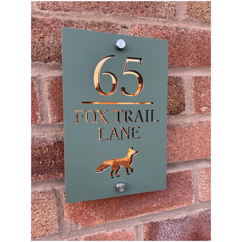 Inspired by the simple beauty of nature, we offer a natural colour choice of PERSPEX® Acrylic in a Matt finish, simulating the earthy tones and velvety texture of natural stone to compliment the material around them, such as stone, brick, wood or metal for example. With a contracting coloured or mirror background your new sign will give a stunning luxury feel to the front of your home.